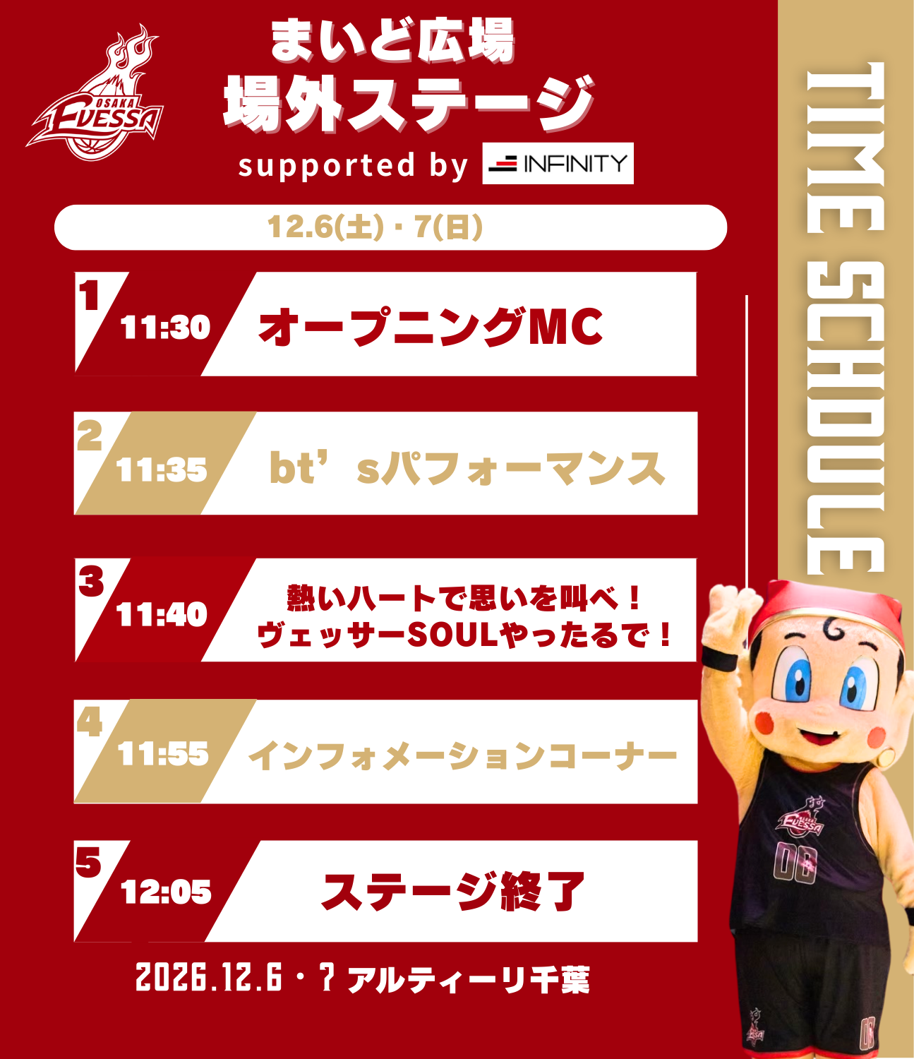開演※場内演出が始まる時間です。開演時間に合わせてご来場いただくとホームゲームをより一層お楽しみいただけます。