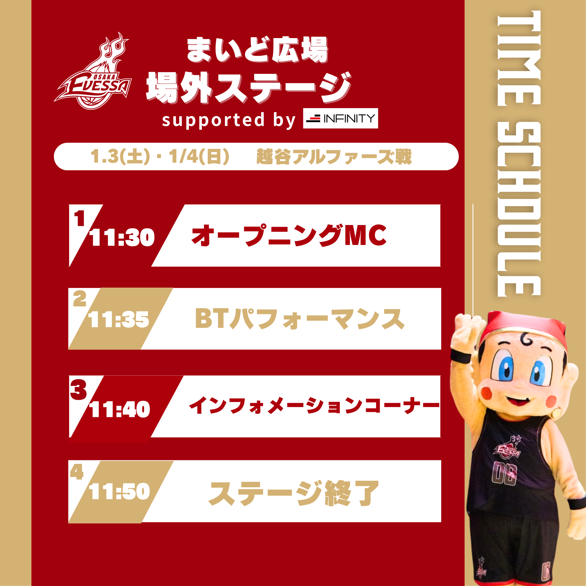 開演※場内演出が始まる時間です。開演時間に合わせてご来場いただくとホームゲームをより一層お楽しみいただけます。