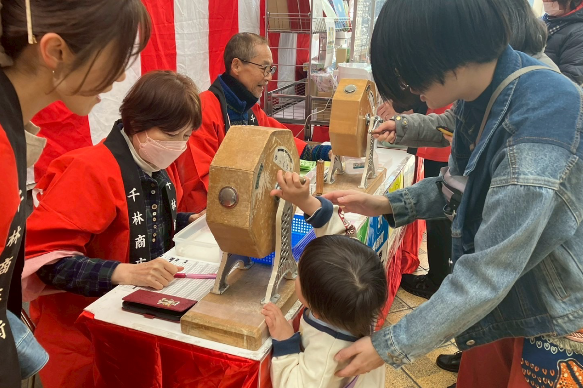 3ポイントシュートに挑戦し、シュートを決めたら1万円分の商品券をゲット!失敗したら次の挑戦者にキャリーオーバー!