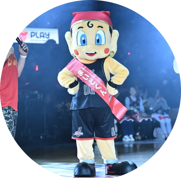 子供ながら抜群の運動能力を持ち、いつも元気なキャラクターは、なにわっこにも大人気。トレードマークはチームカラーの赤い頭巾と大きな福耳。