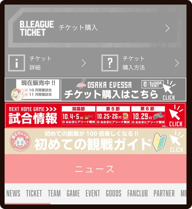 チケットを購入したら、TOPページの試合情報ボタンから当日の試合情報をチェックしましょう!