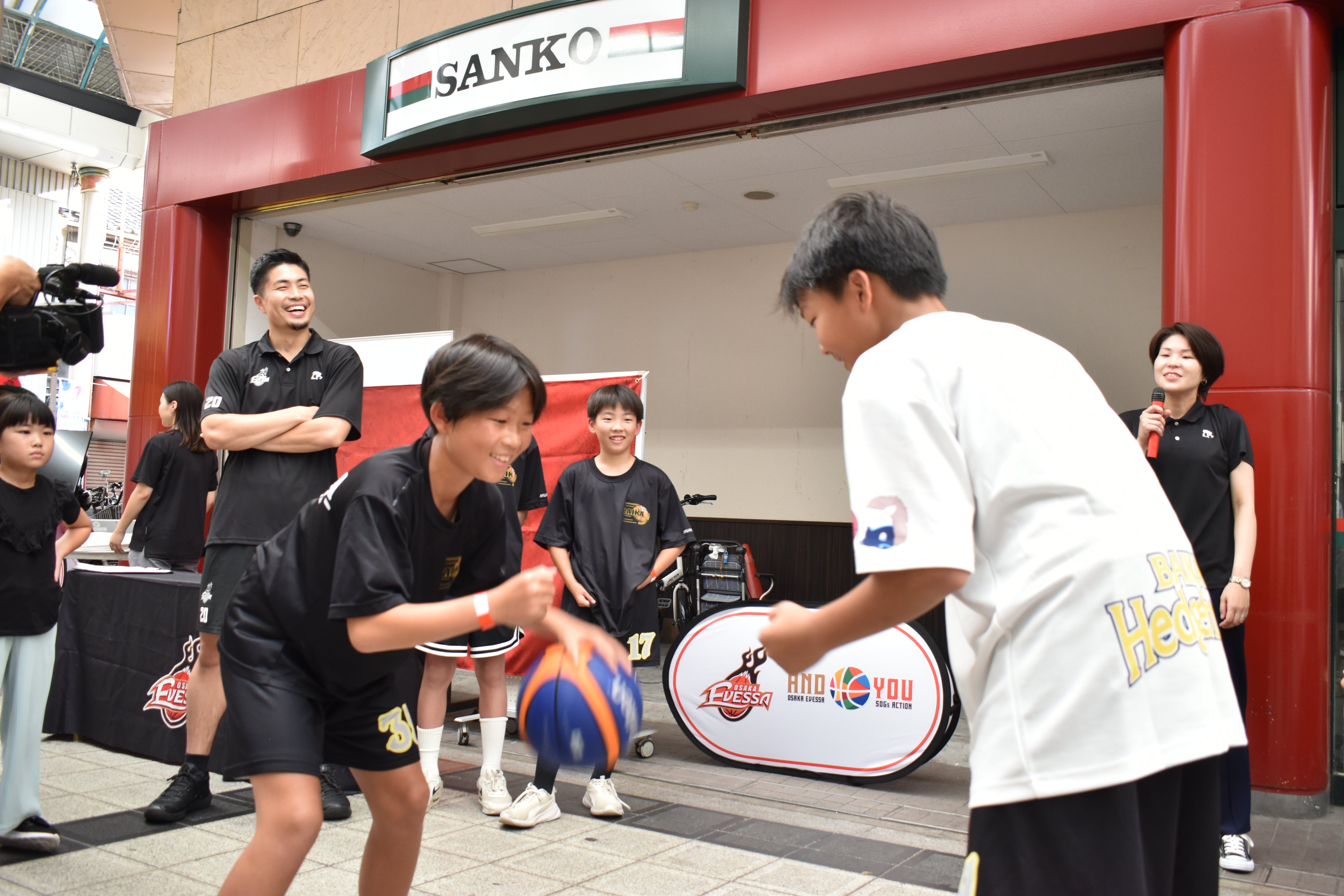 第一部では、子どもたちとのバスケットボールを通じた交流イベントを実施。