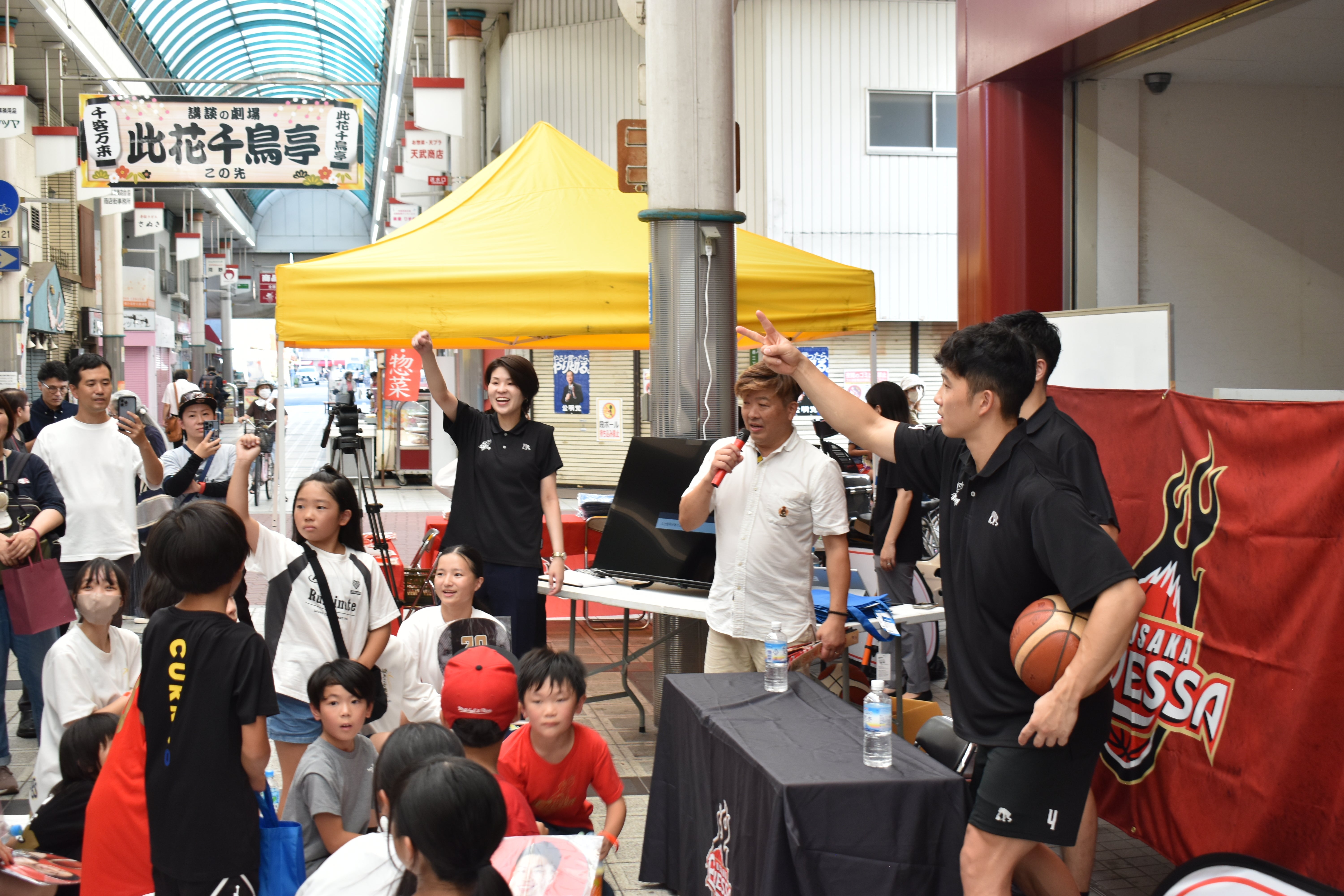 大阪エヴェッサでは、此花住吉商店街との連携のもと、8月20日(水)に開幕前イベントを実施しました。