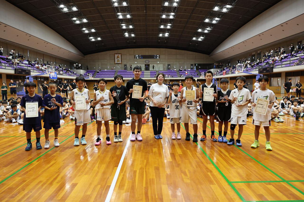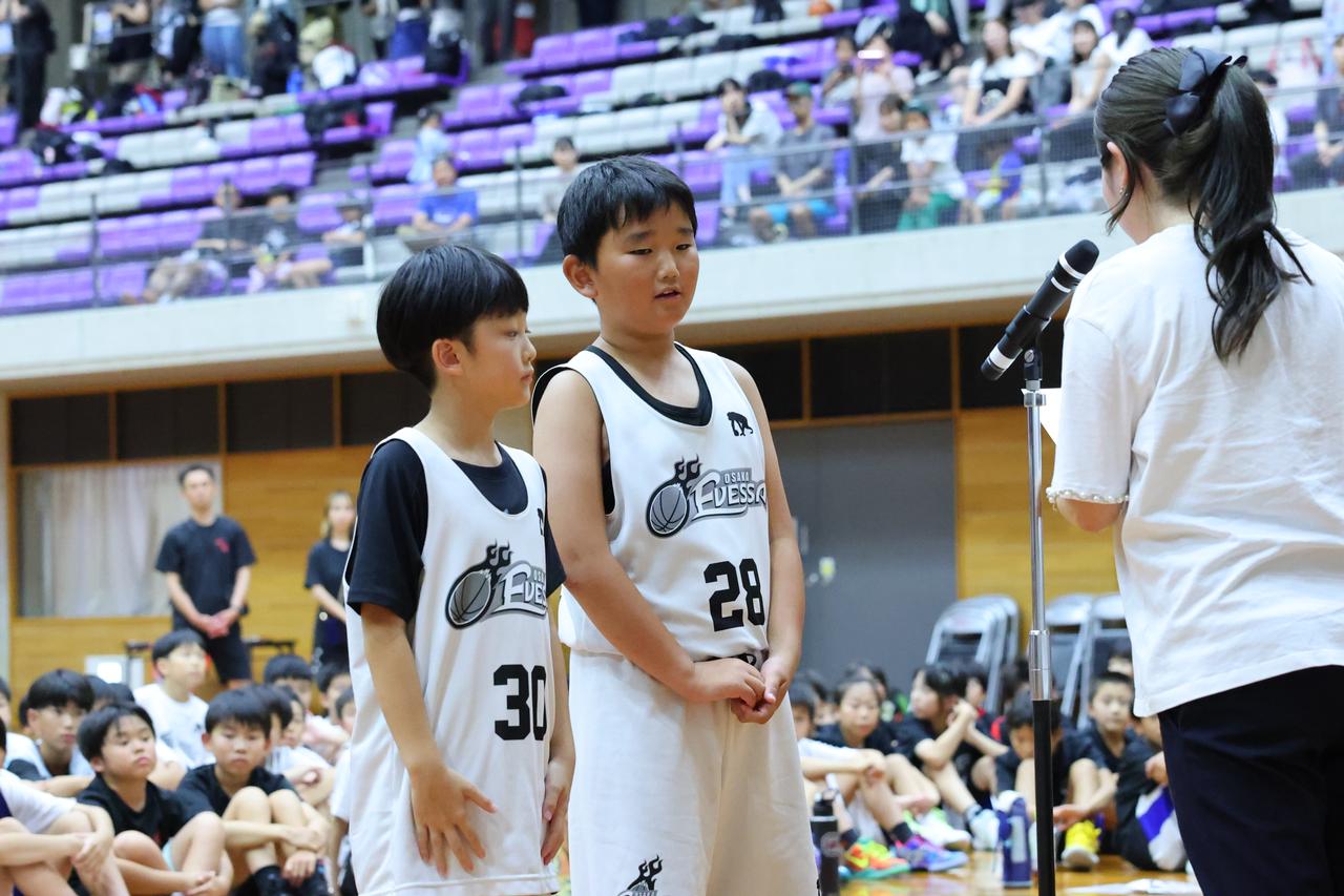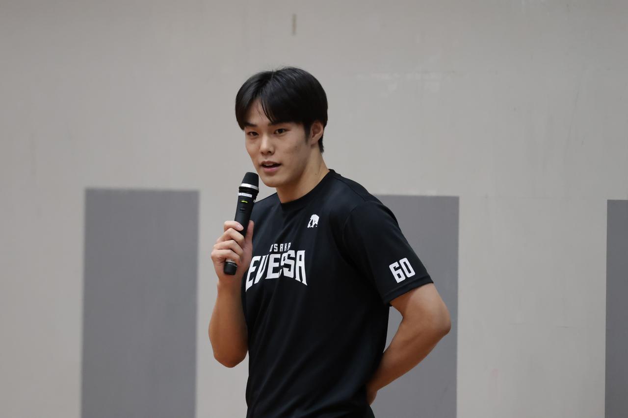 開会式では、ご協賛いただいております株式会社ENJIN 砂様よりご挨拶を賜り、また特別ゲストとして大阪エヴェッサ #60 坂本聖芽選手が、選手の皆さまへ激励のメッセージを送りました。