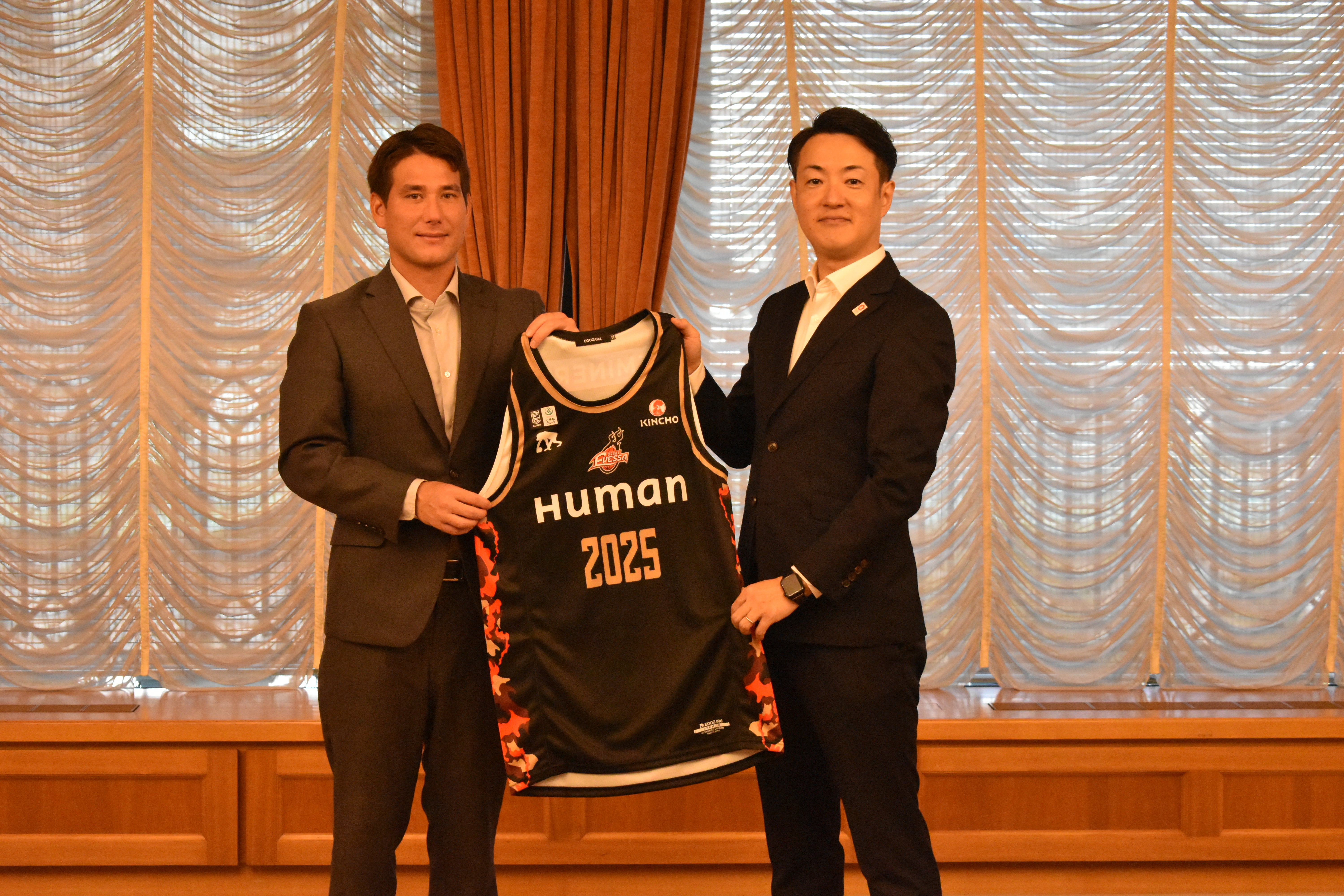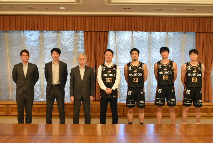 2025年9月30日(火)、大阪市役所5階市長公室にて、りそなグループ B.LEAGUE 2025-26シーズンの開幕に伴い、ヒューマンプランニング株式会社代表取締役 磯村 英孝、今野 翔太ゼネラルマネージャー、藤田 弘輝ヘッドコーチ、大阪市東住吉区出身の合田 怜選手、牧 隼利選手、坂本 聖芽選手が大阪市の横山 英幸市長を表敬訪問しました。