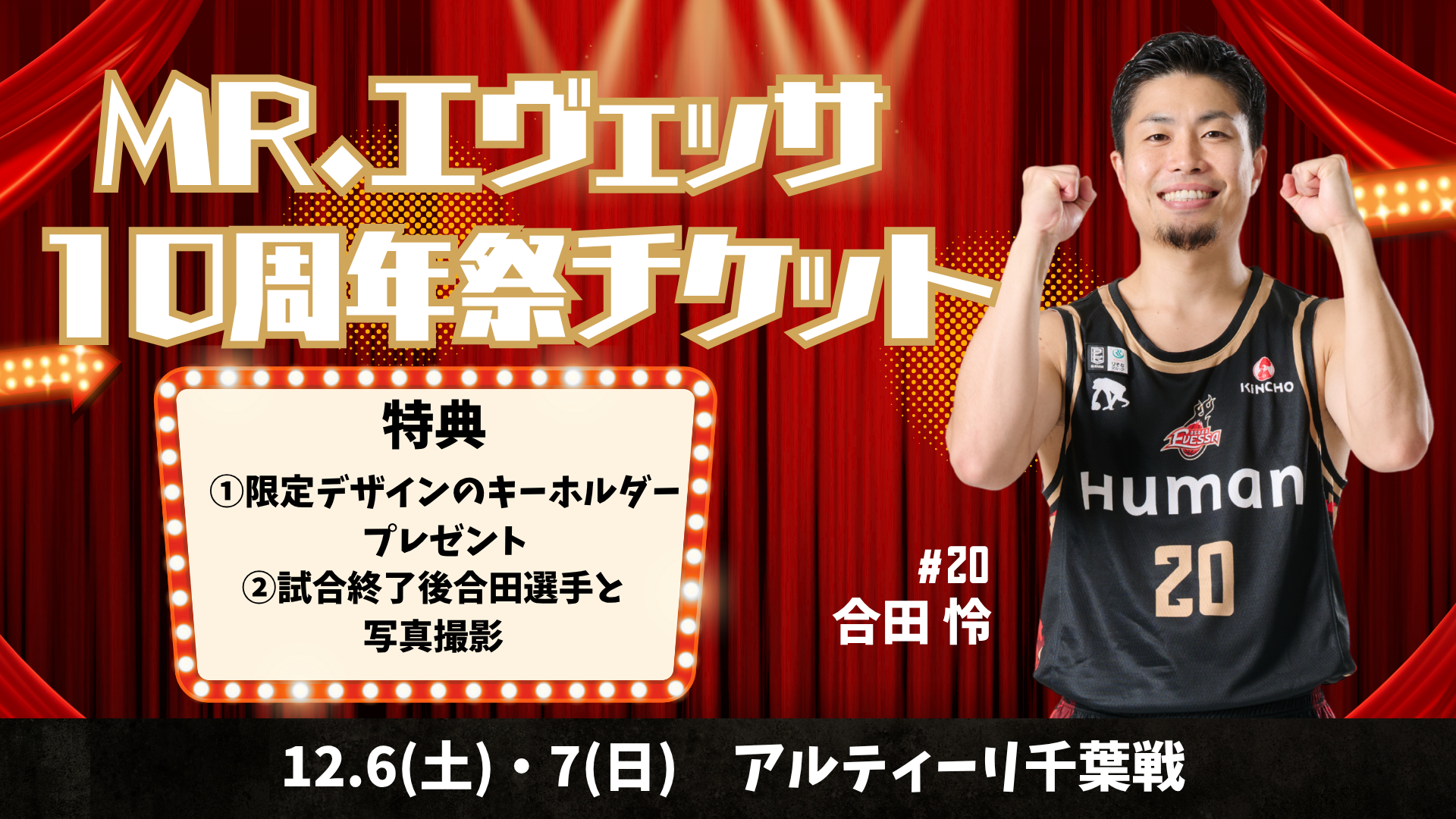 B.LEAGUEチケットの希望試合購入ページから「Mr.エヴェッサ10周年祭チケット」を選択注意事項