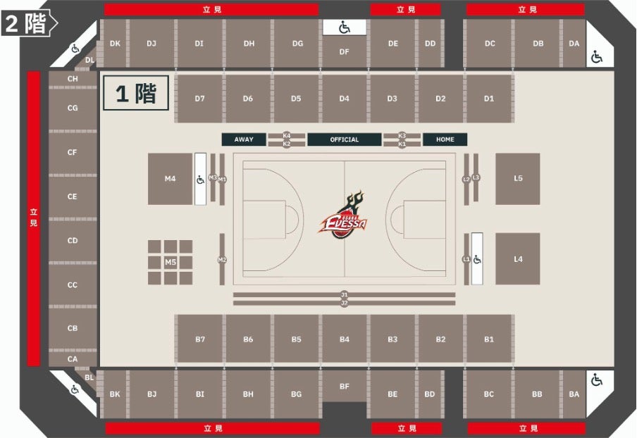 ・立見席は、CLUB EVESSA特典のお誘いチケットや市民応援デー等の招待チケットの対象外です。