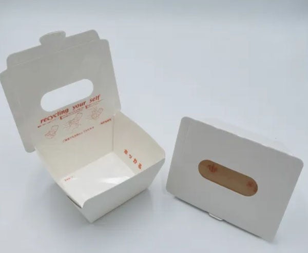特別な器具を使わず、簡単に紙容器とフィルムに分別できるリサイクル紙容器です。