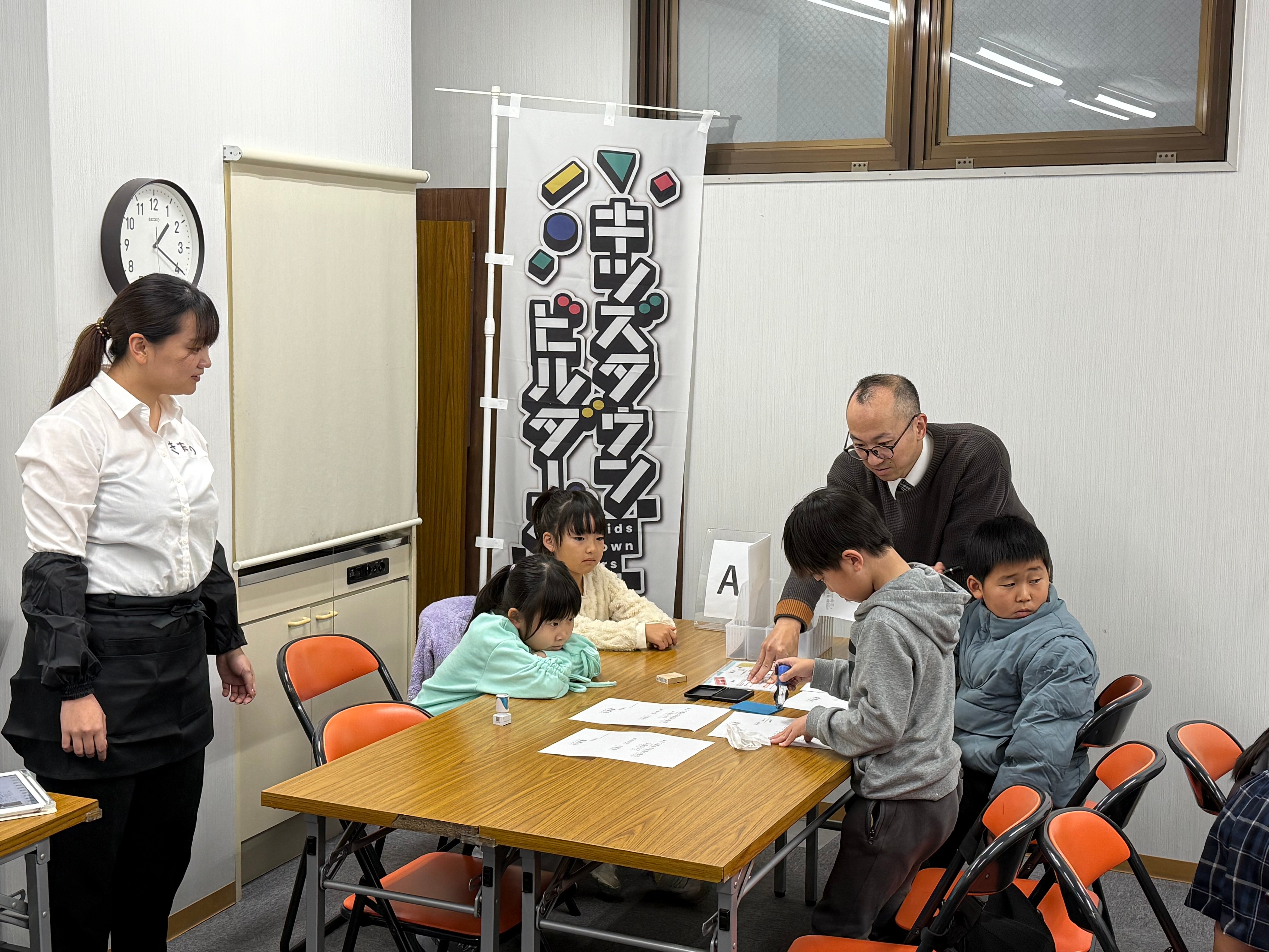 また、株式会社中野農園様にもご参加いただき、「ハンコの達人」には総務職の社員様、「セールスクエスト」には営業職の社員様にお越しいただき、子どもたちのサポートや、実際の仕事の進め方について直接教えていただきました。