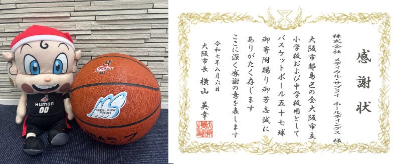 このたび、株式会社メディカル・サプライホールディングスさまのご協力のもと、大阪市都島区の全小中学校へバスケットボール57球を寄贈しました。