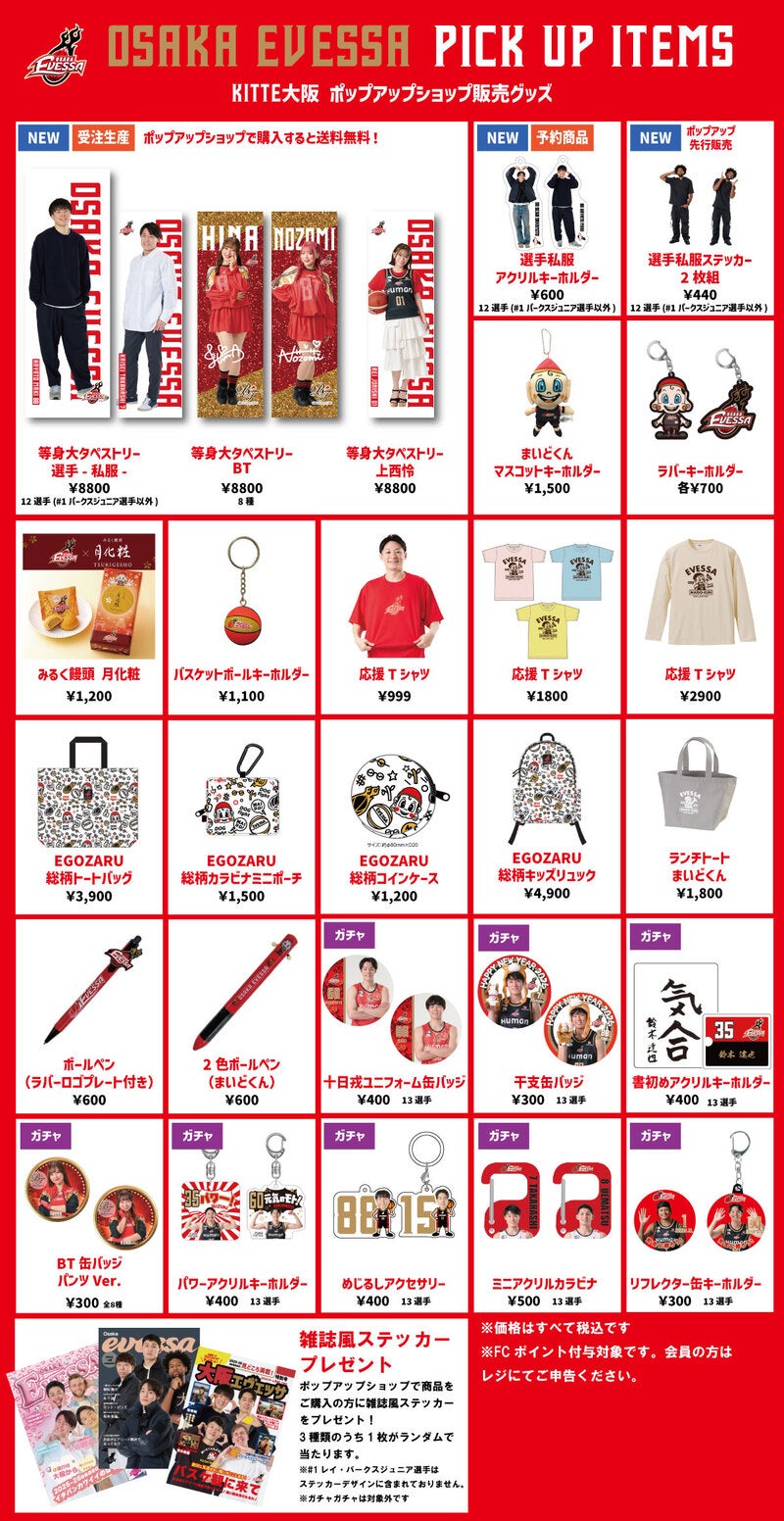 選手の私服姿を等身大で楽しめる特別なアイテム。ぜひポップアップショップでご購入ください!