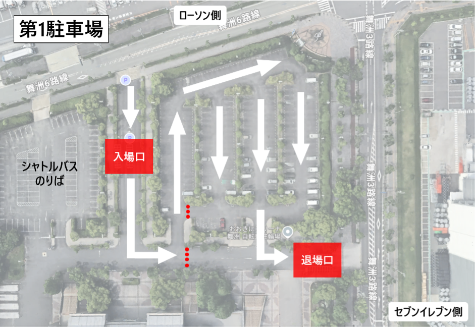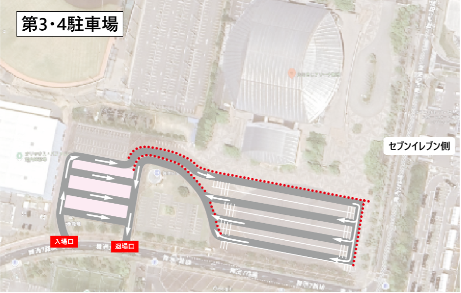 ②第3・4駐車場内の一方通行化および入退場口の切り分け