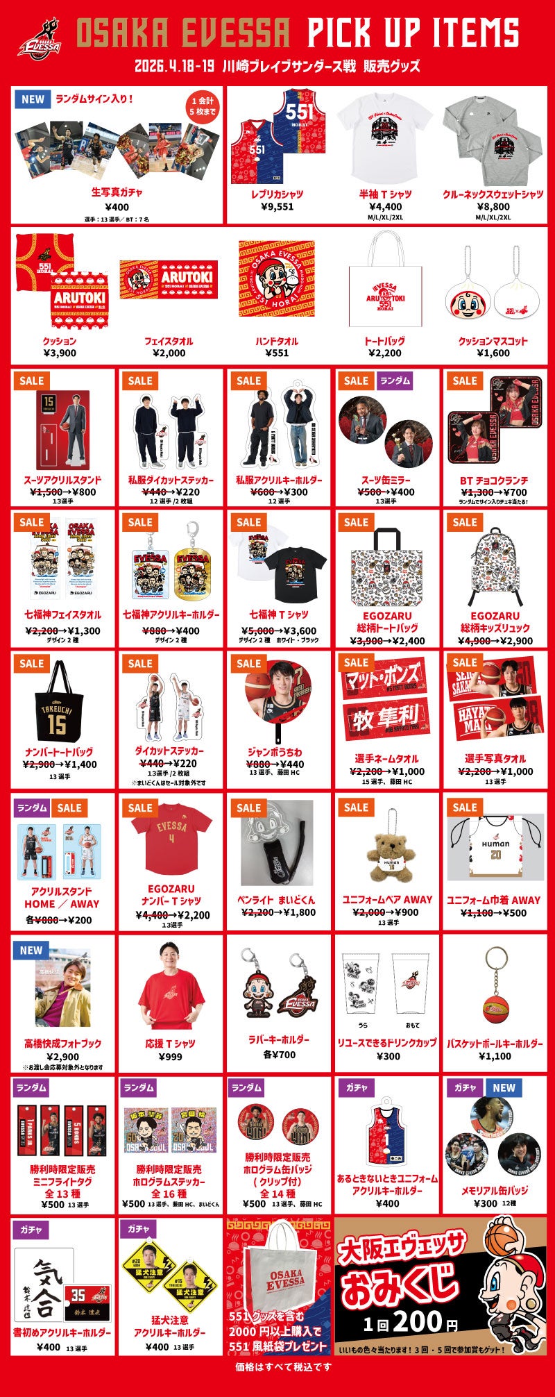 2026年4月18日(土)・19日(日)川崎ブレイブサンダース戦の会場にて販売するグッズをご紹介します!