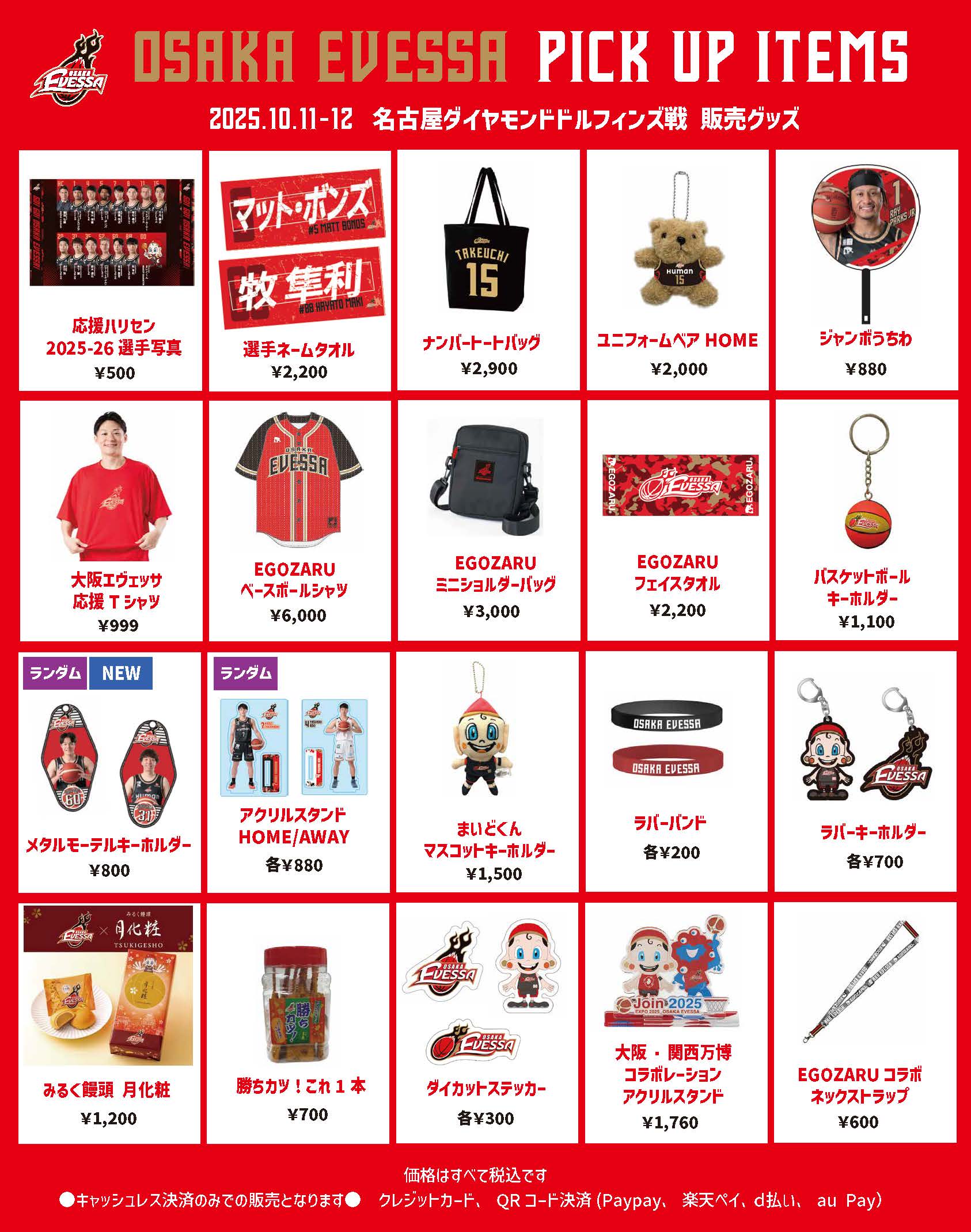 10/11(土)・10/12(日)名古屋ダイヤモンドドルフィンズ戦では、大阪エヴェッサのグッズブースを出店します。