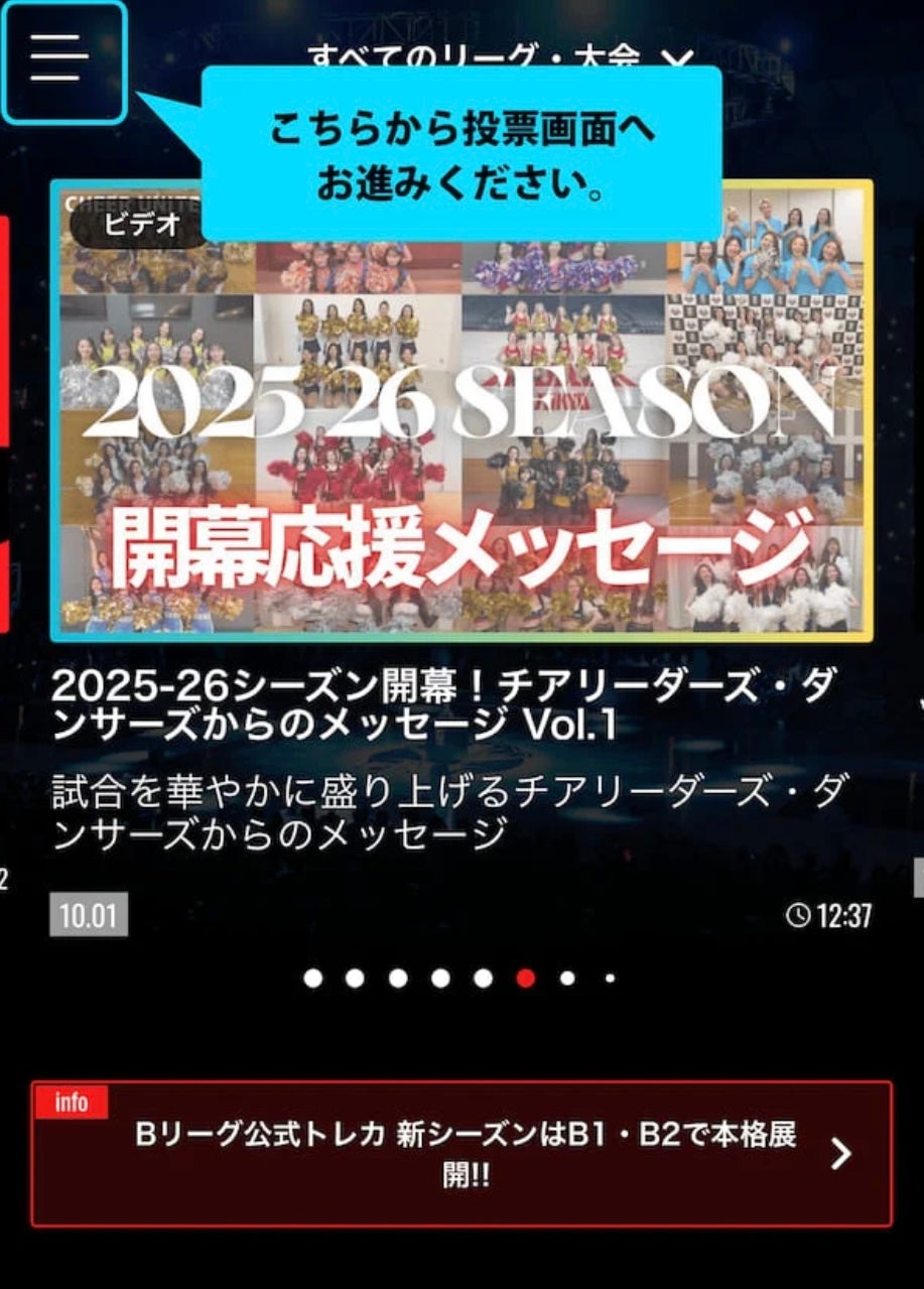 B.LEAGUE公式チケットアプリ「B.スマチケ」内のカードコレクション「B.LEAGUE CARD」またはブラウザ版「B.LEAGUE CARD ~WEB~」で投票が可能です。