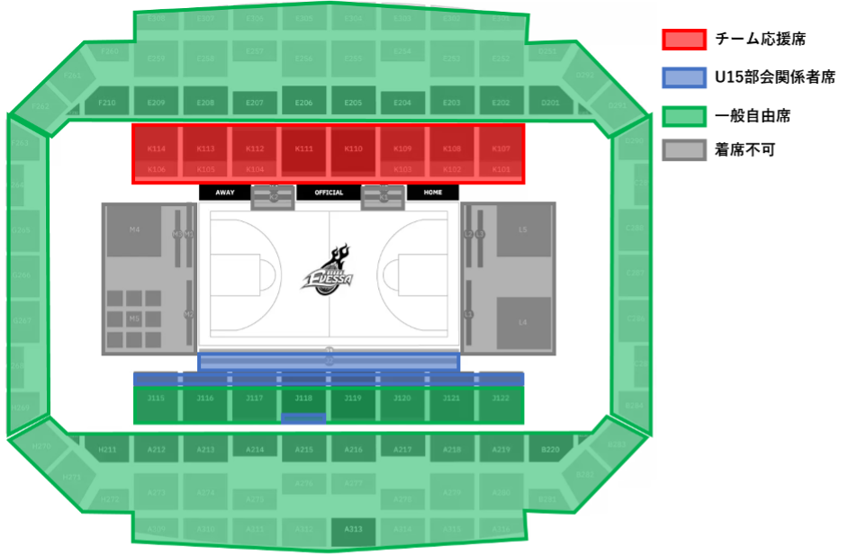 Jr.ウインターカップ大阪府予選「チーム応援席・関係者席」 ※一般のお客さまの着席不可
