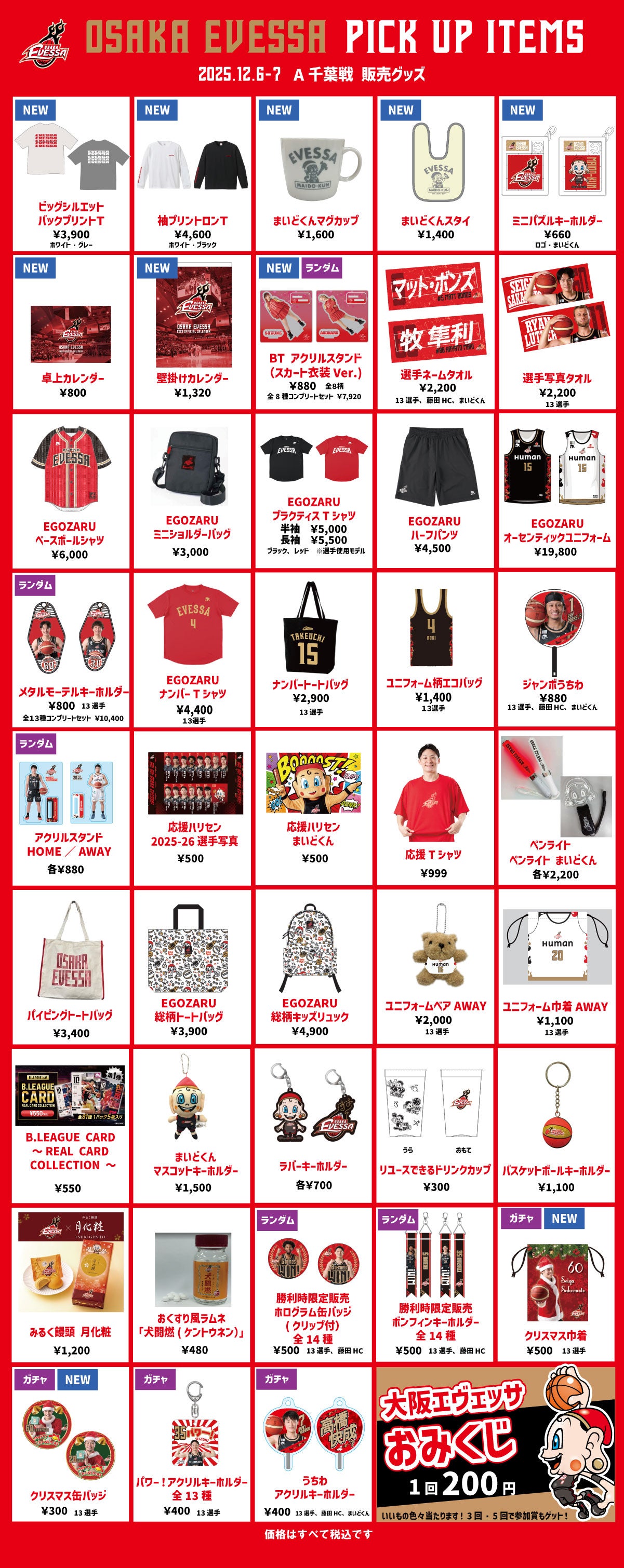 2025/12/6(土)・12/7(日)アルティーリ千葉戦の会場にて販売するグッズをご紹介します!
