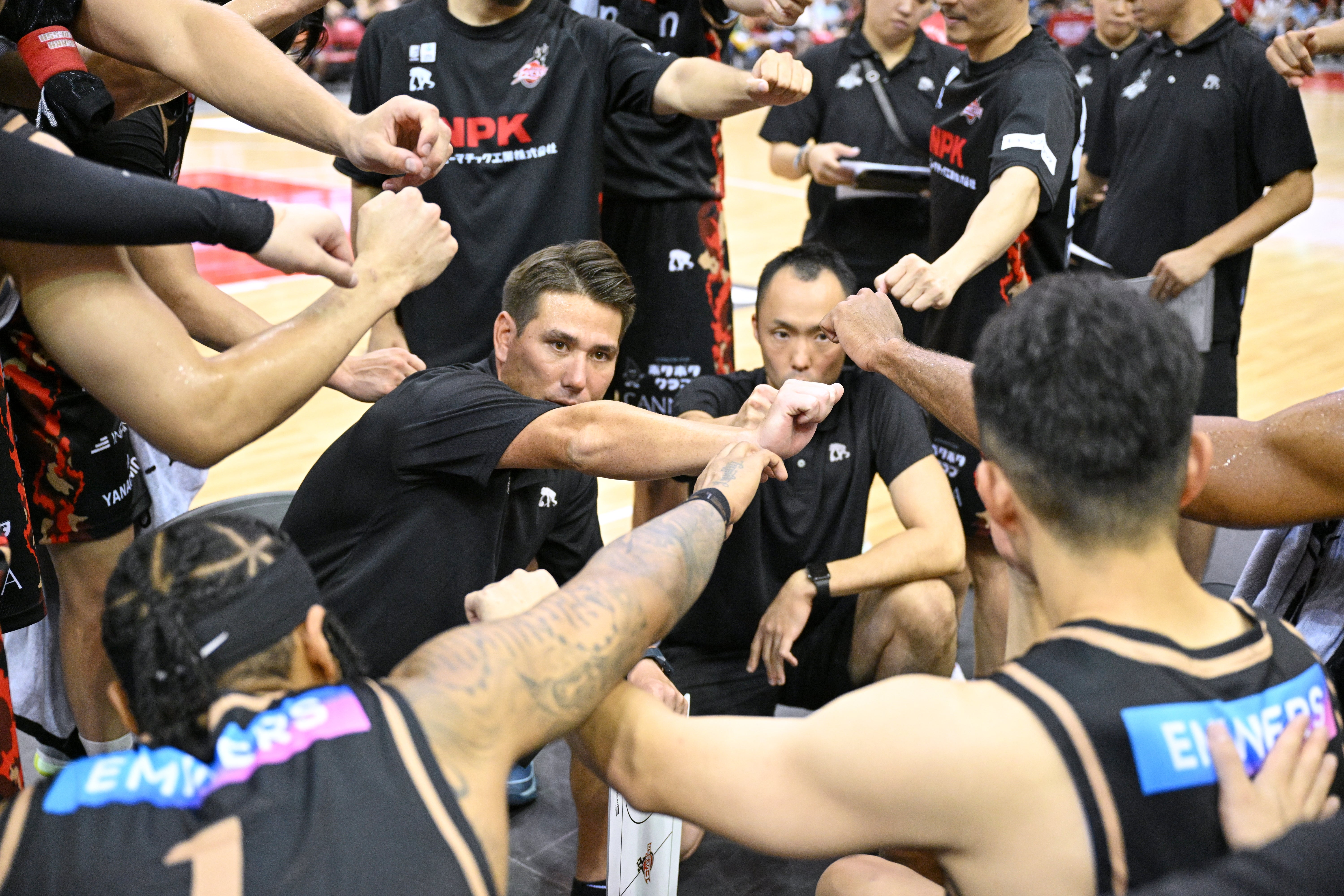 「やっていくバスケットの根底は、変わりません。ディフェンスは全員でハードワークして、オフェンスも全員で目的を持ってボールを回しながら展開する。そのうえで昨季からの上積みになりそうなのは、ガード陣のディフェンス力ですね。これは正直、昨シーズンより格段に上がっています。あとは外国籍選手も昨シーズンから全員が継続なので、(#15竹内)ジョージさんを含め、ビッグマンみんながどういうバスケットをやるか理解してくれている段階からのスタート。ディフェンスもオフェンスも理解力が高いので、HCとしてもすごくやりやすいですよ」