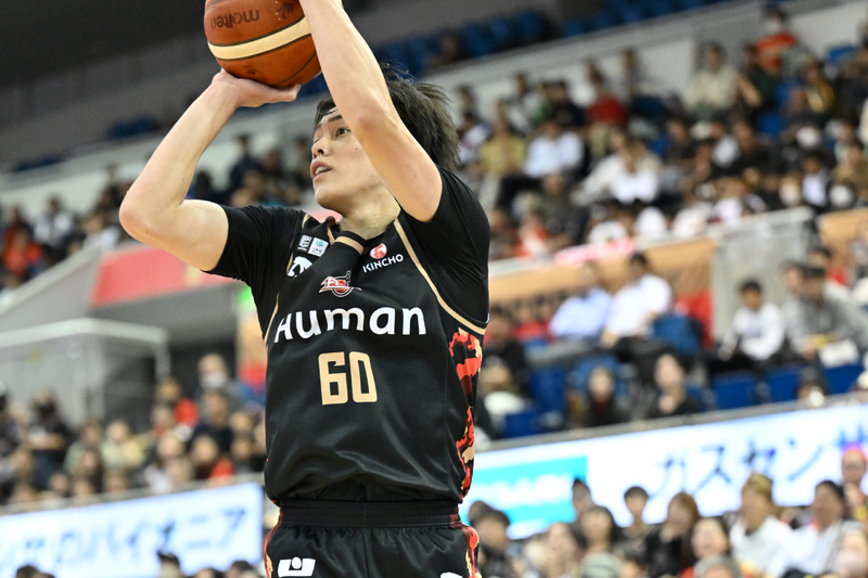 移籍1シーズン目ながら、今季の開幕戦にスターターで出場。前線から相手を激しく追い回し、攻撃に転じてはポイントガード(PG)としてスピードに乗ったドリブルで敵陣に切り込む。勝負どころでは、自らスコアも決めた。ニューフェイスである背番号60のプレーは、見る者に強いインパクトを与えた。そんな坂本聖芽がこだわるプレーはディフェンス。その原点は、大学時代にある。