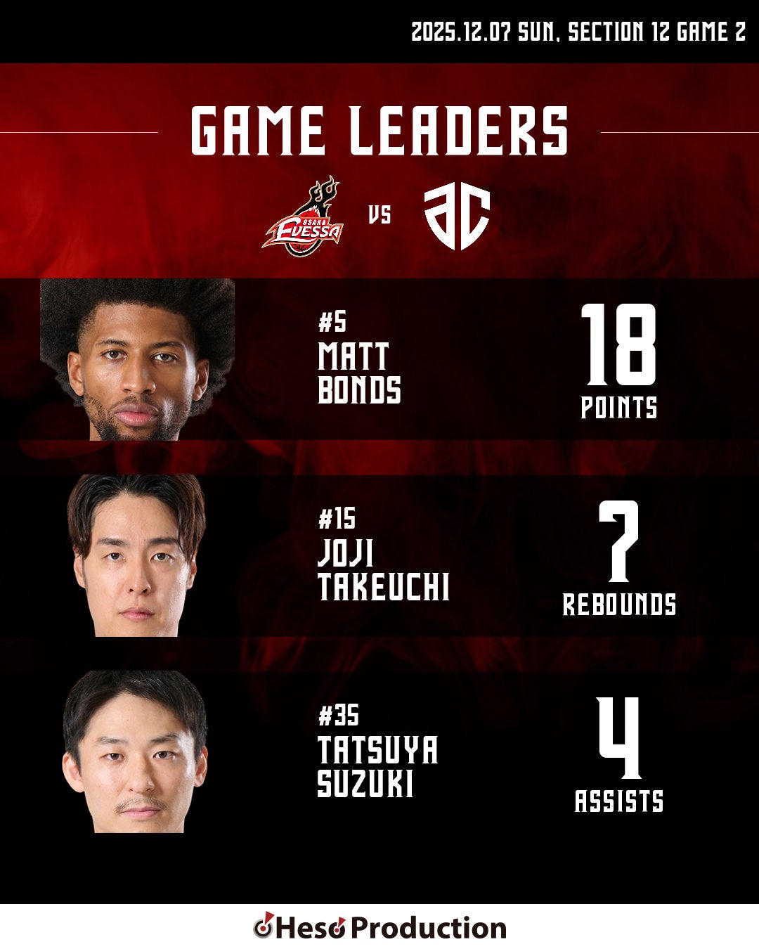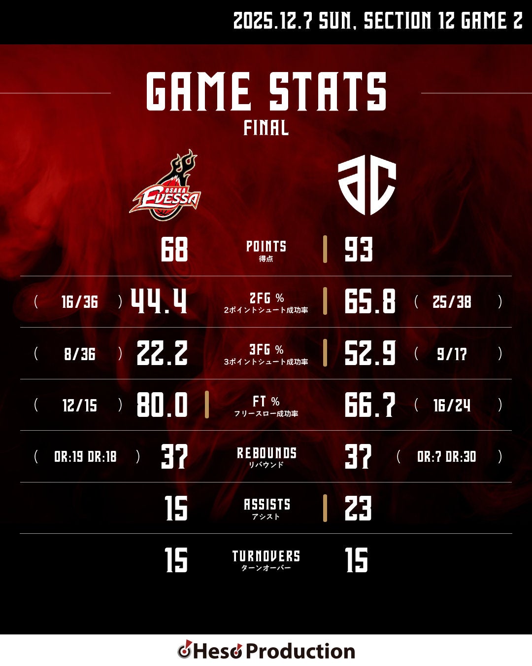 HOME > スケジュールレポート_動画 > 【ホーム】12/7 大阪 vs A千葉(2025-26)