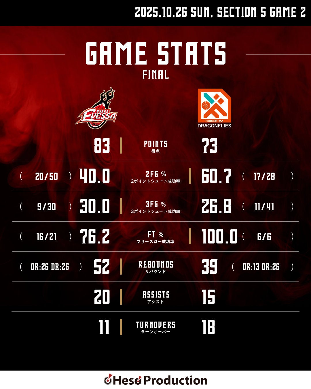 HOME > スケジュールレポート_動画 > 【ホーム】10/26 大阪 vs 広島(2025-26)