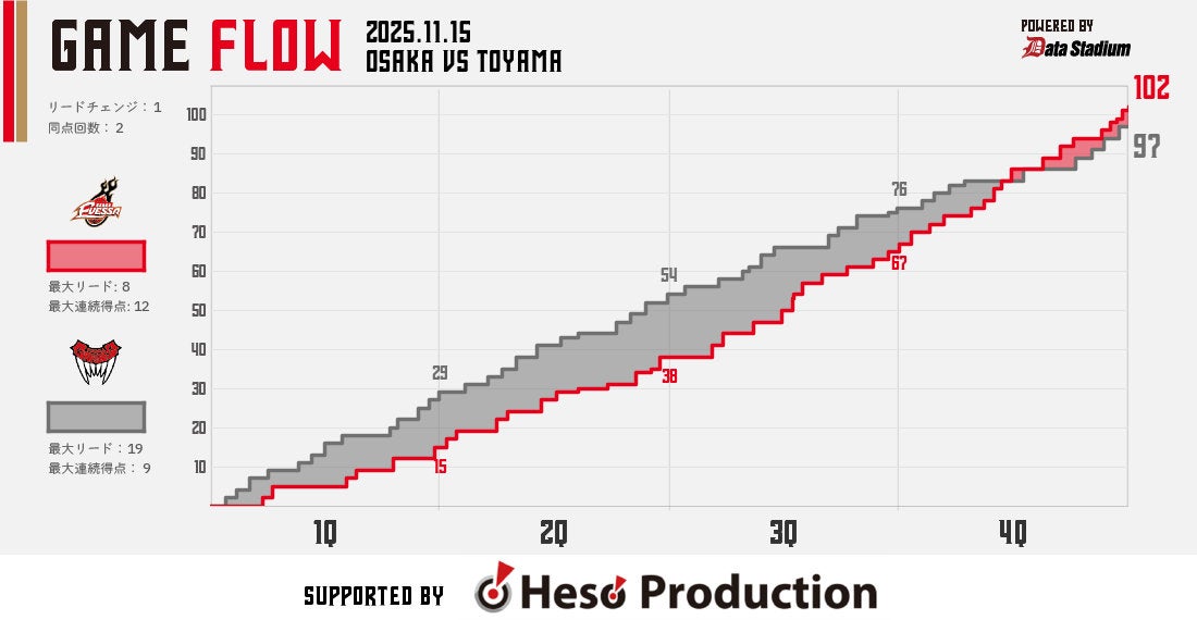 HOME > スケジュールレポート_動画 > 【アウェー】11/15 富山 vs 大阪(2025-26)