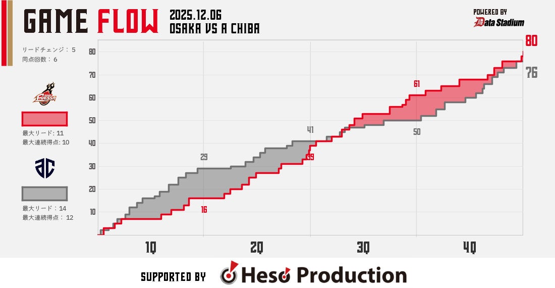 HOME > スケジュールレポート_動画 > 【ホーム】12/6 大阪 vs A千葉(2025-26)